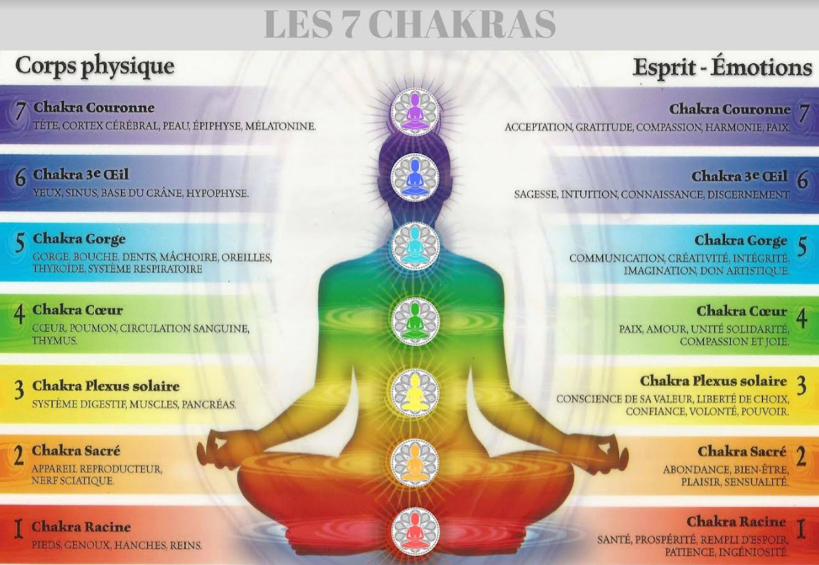 Il y a 7 chakras principaux :